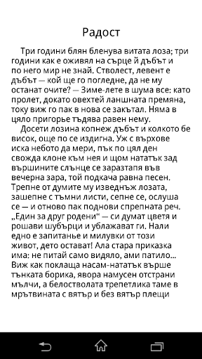За да ползвате приложението не е необходимо да сваляте допълнителен четец. Всяко произведение е самостоятелна апликация. Вие преценявате кое от тях да оставите на телефона си или кое да изтриете. Целим да дадем възможността на хората да разполагат с библиотека от любимите си български произведения.
