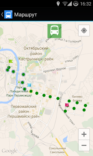- карта Google (Android 2.2+) с определением текущего местоположения;