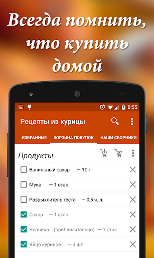 Рецепты можно отправлять друзьям или тому, кто идет в магазин за продуктами!