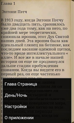 изменение размера шрифта и междустрочного интервала, режимы чтения день-ночь, выбор цветов фона и шрифта, добавление и чтение закладок, а также удобная навигация и поиск.
