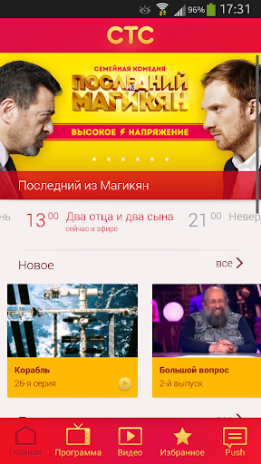 Скачай официальное приложение, и ты сможешь смотреть бесплатно все телепрограммы и сериалы телеканала СТС онлайн: «Молодежка», «Воронины», «Кухня», «Восьмидесятые», «МастерШеф», «Уральские пельмени», «Шесть кадров», «Выжить после», «Два отца и два сына» и многое другое.