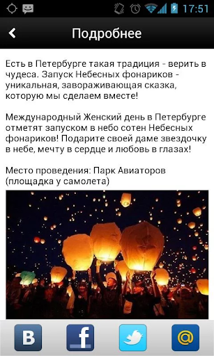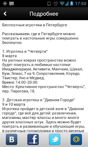 Вы можете делиться информацией с друзьями в социальных сетях: Вконтакте, Facebook, Twitter и email.