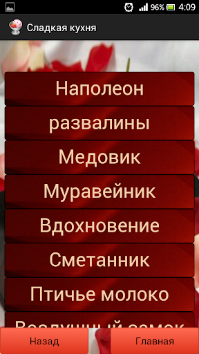 Сладкая кухня Это приложение включает в себя рецепты сладкой выпечки и десертов. Она поможет узнать что-то новенькое и вкусненькое или вспомнить давно забытый Вами рецепт! Скачайте ее : ) Вам будет вкусно и сладко!!!