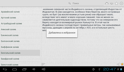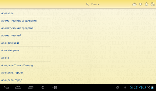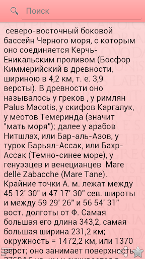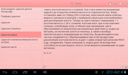 Данное приложение представляет собой энциклопедический словарь Брокгауза и Ефрона, сокращенно: (ЭСБЕ) - это универсальная энциклопедия на русском языке, изданная в Российской империи, которая была выпущена акционерным издательским обществом Ф. А. Брокгауз , И. А. Ефрон (Петербург) в 1890—1907 годах.