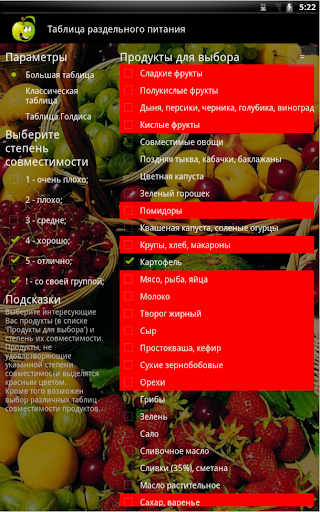 Полная версия приложения, включающая дополнительно совместимость продуктов по таблице Голдиса и Большой таблице совместимости доступна под названием "Таблица раздельного питания".