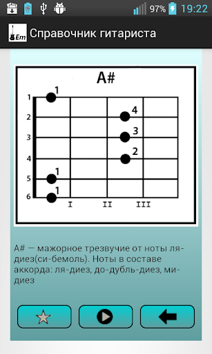 Справочник гитариста предназначен как для гитаристов - новичков, так и для опытных музыкантов. Программа является справочником по наиболее распространенным гитарным аккордам с аппликатурами и примерами звучания.