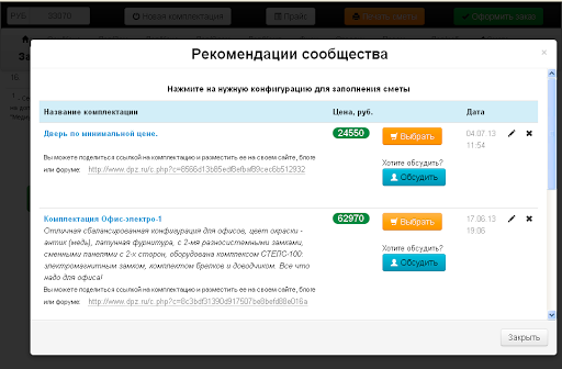-Рекомендации сообщества, двери со скидками, спецпредложения, обсуждения комплектаций