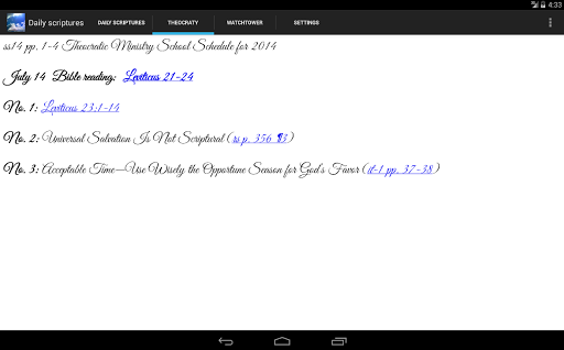 Стих на 2014 год, без интернета (первостепенные ссылки тоже). Не забудте про виджет на главный экран. Все первостепенные ссылки работают. Без интернета сылки на библейские стихи, на школу теократии, на текущию статью сторожевой башни и на песни до и после изучения сторожевой башни.