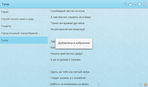 Данное приложение представляет собой сборник известных и великих русских поэтов, всего насчитывается около 16000 стихов, для удобства все данные расположены по алфавитному порядку, при необходимости нужный стих быстро можно найти через встроенный поиск. Вы обязательно найдете свои любимые произведения, в том числе многим известные о природе, о любви, о родине.