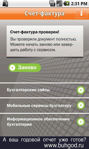 Сервис «Счет-фактура на проверке» сделает ваш смартфон прекрасным помощником в делах. Вы без труда проверите любой счет-фактуру и сможете во время исправить недочеты, на которые любят обращать внимание налоговики. Признание счет-фактуры недействительным по формальному признаку – обычная практика проверяющих. Любая мелочь в оформлении может послужить отказом в возмещении НДС. Проверка счет-фактуры никогда не будет лишней.