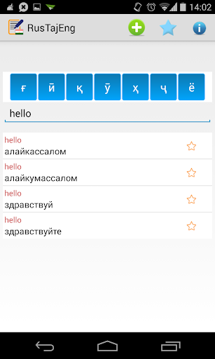 *Теперь нет необходимости для ручного переключения языков с одного на другой. Пользователь имеет возможность вводить слово для перевода на английский или таджикский или русский языки в одно и то же текстовое поле. Программа автоматически определит язык слова и выведет его перевод.