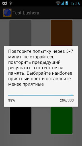 Цветовой тест или тест Люшера. Это экспресс анализ психологического состояния, достаточно просто выбрать понравившиеся цвета и программа проанализирует ваше психологическое состояние.