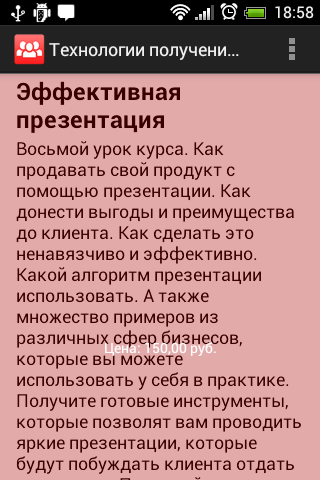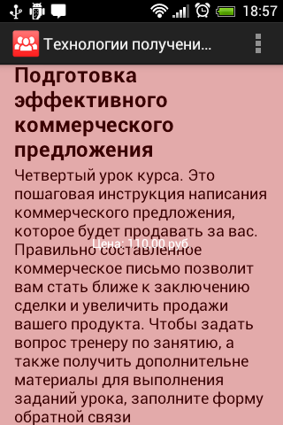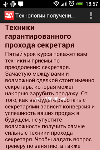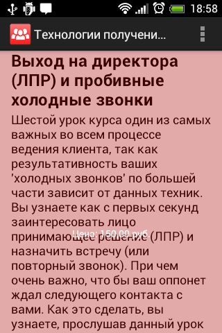Данный курс является корпоративным тренингом продаж. Приложение содержит 14 аудио уроков с готовыми инструкциями и заданиями. Автор: Артем Шинкарук – бизнес-тренер по продажам.