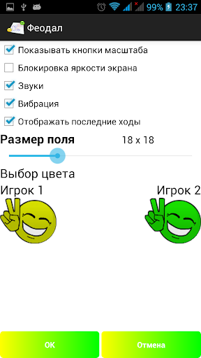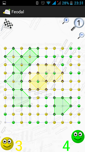 Игра идет на поле размером NxN пунктов. Пунктом считается пересечение линий на поле. Играют двое, разными цветами.