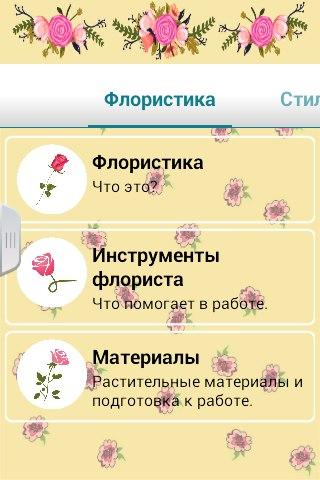 На первый взгляд, кажется, что составить красивый букет не составит никакого труда. Но на самом деле искусство флористики – это кропотливый труд. В приложении «Флористика» вы можете найти всю необходимую информацию: разновидности материалов, обработка цветов перед работой и правильный уход за ними, стили, композиции и многое другое. Совершенствуйте свое мастерство вместе с нашим приложением «Флористика»!