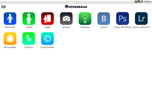 В данном приложении рассказывается об искусстве и технике фотографии: набор фото поз, уроки по настройке фотоаппарата, полезные ресурсы в интернете, фотографии для наглядного примера. Вы сможете сделать собственную фотостудию, разберетесь со светотехникой и правилами фотосъемки, кроме того, у вас будет под рукой справочник маркировки объективов, и фотоаппаратов, словарь профессиональных терминов и обозначений.