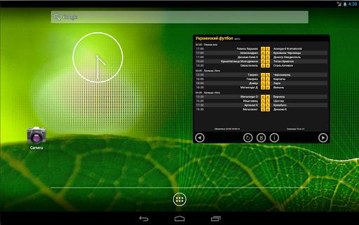 Простенький и удобный виджет, отображающий результаты футбольных матчей украинских команд, на рабочем столе вашего телефона или планшета. В виджете доступна информация о командах украинской Премьер лиги и Первой футбольной лиги, а также счета кубковых и еврокубковых футбольных матчей. Информация обновляется автоматом раз в 30 минут. Также доступна возможность обновить футбольные результаты вручную.