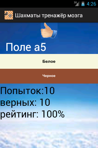 Простая игра на запоминание цвета полей шахматной доски. Полезна при обучении шахматам, особенно малышей, детей от 4 до 7 лет. Шахматисты -разрядники также могут улучшить своё видение доски. Это улучшает счёт, быструю игру, анализ. Простой тренажер памяти и логики. Можно использовать как убиватель времени. Шахматы двигают вперед не только культуру, но и экономику! Первый ход будущего мастера. Ваш малыш сможет это. Вы уже умеете играть? Шахматы тренажер мозга . Улучшите свои навыки.
