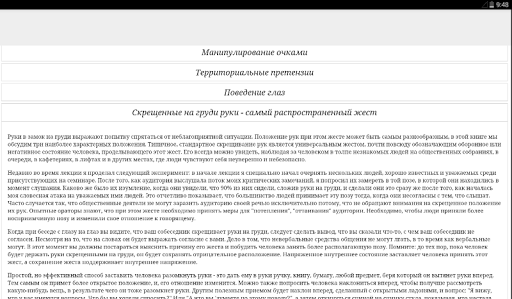 Жесты, мимика, интонации — важнейшая часть делового общения. Порой с помощью этих средств (их называют невербальными) можно сказать гораздо больше, чем с помощью слов. Наверное, каждый может вспомнить, как он сам прибегал к красноречивым взглядам и жестам или "читал" ответ на лице собеседника. Такая информация пользуется большим доверием. Если между двумя источниками информации (вербальным и невербальным) возникает противоречие: говорит человек одно, а на лице у него написано совсем другое, то, очевидно, большего доверия заслуживает невербальная информация. Австралийский специалист А. Пиз утверждает, что с помощью слов передается 7% информации, звуковых средств— 38%, мимики, жестов, позы — 55%. Иными словами, не столь значимо, что говорится, а как это делается.