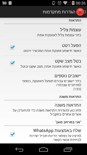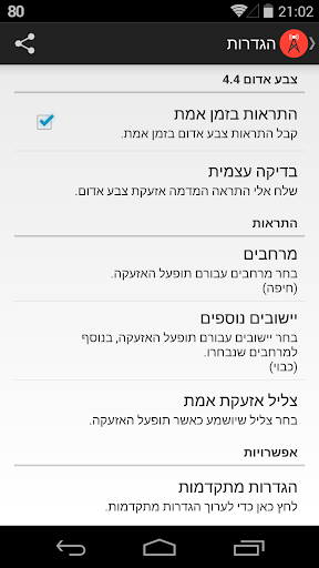 ★ רטט - כאשר מתקבלת התרעת צבע אדום, הטלפון ירטוט בנוסף לאזעקה הקולית