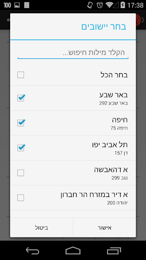 ★ שליטה - אפשרות בחירת מרחבים ויישובים עבורם תופעל האזעקה על-ידי חיפוש לפי שם היישוב / קוד מרחב