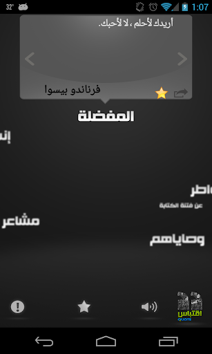 التطبيق يحتوي اقتباسات عربية ومترجمة. كما توجد به بعض الاقتباسات المأخوذة من كُتاب شباب على الإنترنت وبهذا ستكون الاقتباسات قيمة لعرضها أفكارًا من الاتجاهين: القديم المعتمد على الطرق التقليدية في النشر، والحديث الذي يعتمد على الإنترنت وأدواته