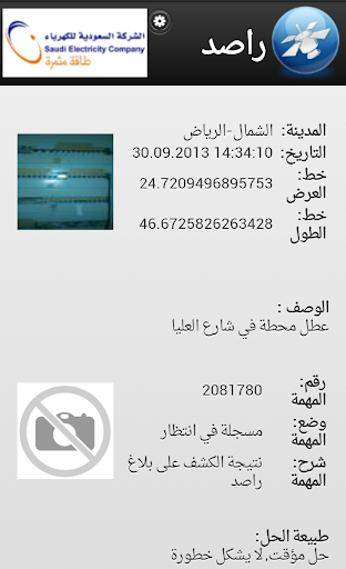 أهلاً بكم في نظام راصد الخاص بشركة الكهرباء السعودية والمخصص للتبليغ المباشر عن أي مشاكل في عناصر الشبكة الكهربائية التي قد يجدها موظف الشركة ويود التبليغ عنها من خلال الصور.