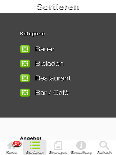 - Einträge sortierbar nach vegan / vegetarisch / omnivor