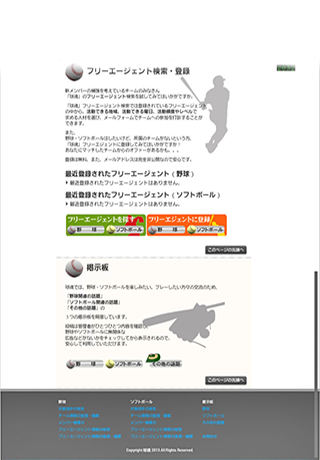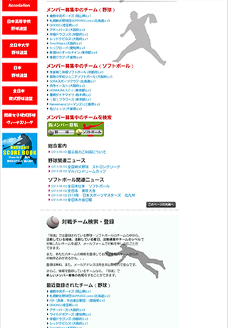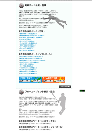 また、登録しているチームなら、「球魂」で新しいメンバー募集の告知をしたり、無料の専用ホームページ(連絡用掲示板つき) を利用することができます。