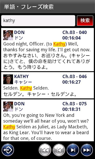 音声付で連続再生したり、お気に入りフレーズを集めて集中的に学習したりすることができます。