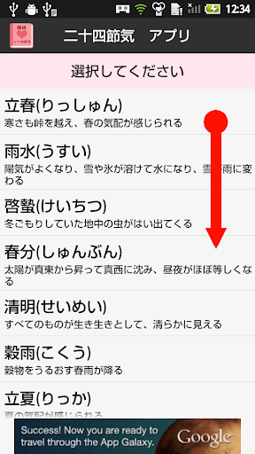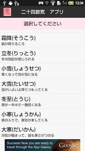 「 意 味 」エリア・・・二十四節気の意味が表示されます。