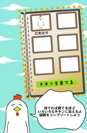 全48種類のゆるキャラがあなたのストレスを癒してくれます。育てたチキンは図鑑で確認できます。さあチキン達を鍛えて、立派なチキンに育てましょう!