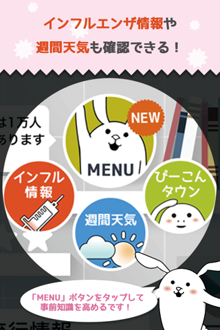 ・「あなたの街のインフルエンザ速報」機能のご利用(アプリのダウンロード、バージョンアップを含む)には別途パケット通信料がかかります。パケット通信料が高額になる可能性がありますので、安心してご利用いただくために、パケット定額サービスへの加入を強くおすすめいたします。