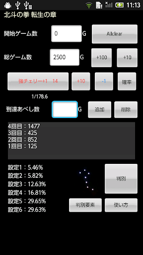 パチスロ北斗の拳転生の章用設定判別アプリです。