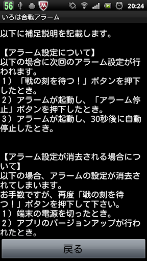 某戦国ゲームの合戦時間になると、アラーム(バイブのみ)でお知らせするアプリです。