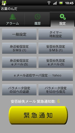 のんだ記録が24時間以上まったく操作されなかった場合に、登録先にメールをします。端末所有者が端末操作できない状態か、端末を紛失した場合を想定しています。