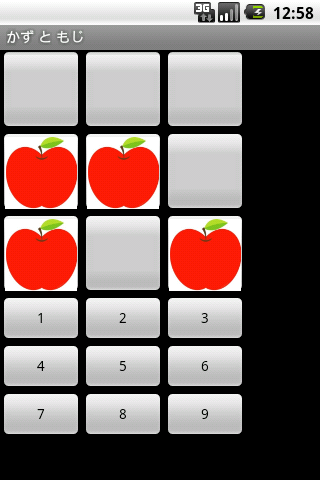 ランダムに表示される”りんご”のかずを数えて、その数字を選択します。