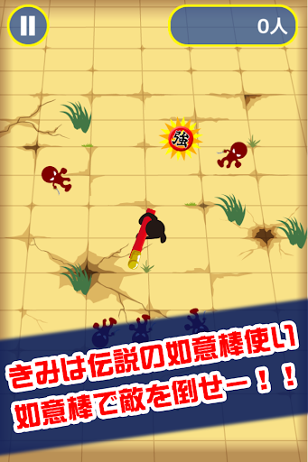 敵を狙って画面タップで如意棒を放ちます。