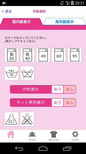 ・お洋服の洗濯絵表示を選択すると適切な洗い方が分かります。
