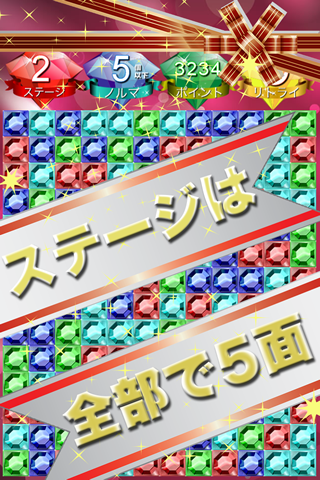 残った宝石がステージに設定されているノルマ以下だと次のステージへ行けるよ!