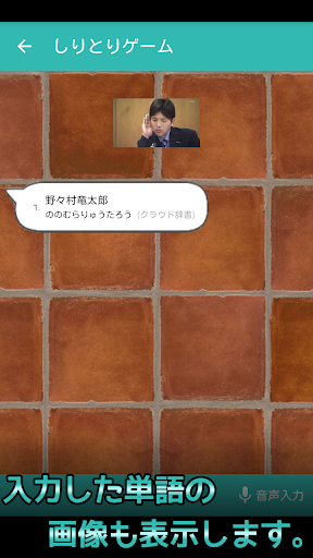 「しりとりゲーム」とは、音声入力、または文字入力で単語を入力して遊ぶ、しりとりゲームです。