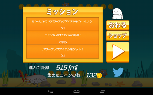 マップは無限で、獲得したコイン数と走行距離を競うゲームです。