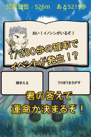 画面をタップするごとに抽選を行い、1/280歩の確率でイベントが発生!