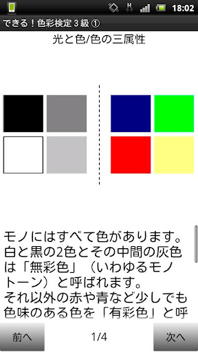 このアプリは色彩検定(3級相当)の内容を学習するテキスト形式のアプリです。