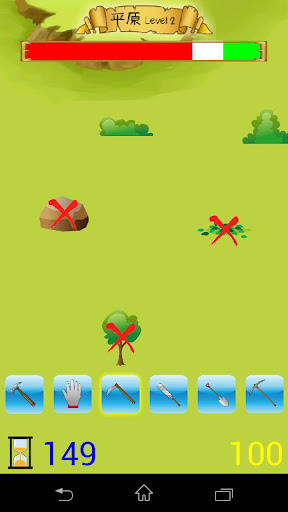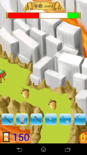 操作は簡単! 該当するツールを選んでオブジェクトにロングタップでゲージを緑の範囲内まで溜め、離すことで採掘が完了します。