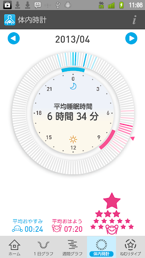 ・おやすみ時刻とおはよう時刻のバラつきをチェック、あなたのねむりのリズムがわかります。