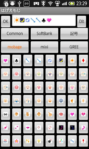 最近モバゲー公式アプリやGREE公式アプリ、またブラウザ上でも一部のゲームにおいて、「はげえもじ」で絵文字が表示されないという問い合わせが多いです。こちらではブラウザで日記を使用して動作確認しています。おそらくアプリや一部のゲーム側で絵文字を無効にする仕様で動作していると思われます。(わざわざ無効にしなくてもいいのでは?とは思っていますが、こちらは公式アプリではないので、打つ手が無い状況です。アプリ側が対応してくれることを気長に願っています。)
