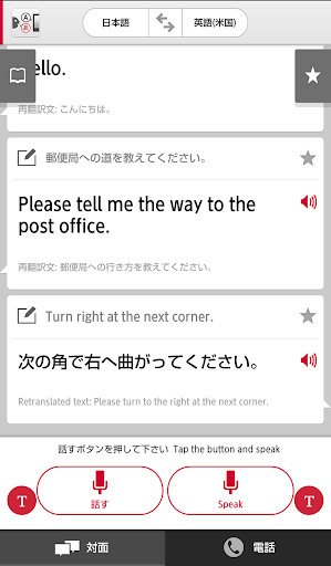 ・向い合っての会話では、交互にボタンを押して話すことで、母国語同士でコミュニケーションをとることができます。