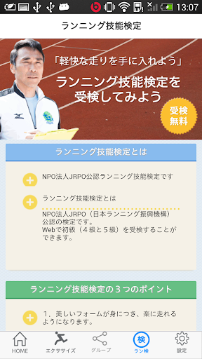 撮影した動画をNPO法人日本ランニング振興機構に送信して、無料でランニング技能検定の初級を受検することもできます!