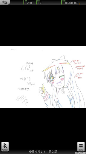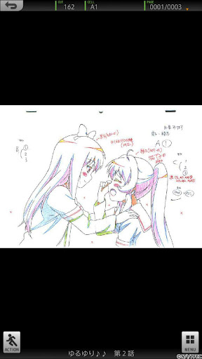 このアプリには第2話「ゆるゆりなる日々なりなる」の絵コンテ/原画・作監修データが付属しています。
